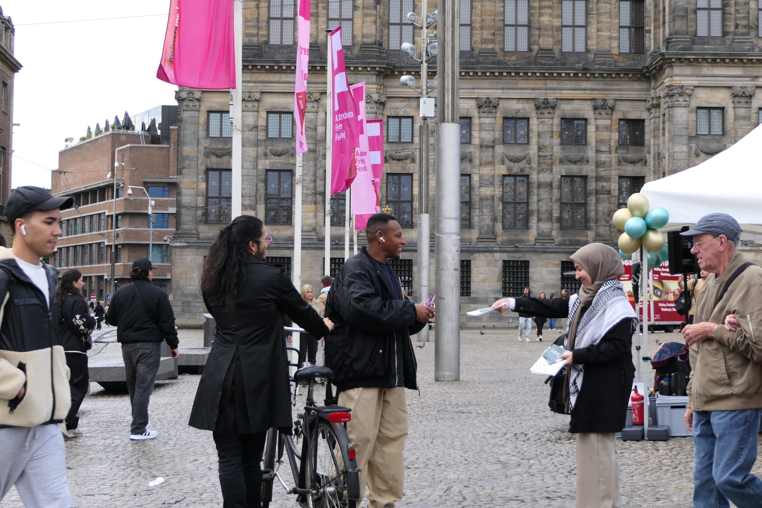اقتربت منبر دام زوارٌ هولنديون ودوليون بفضول، وكانت أسئلتهم في البداية محصورة في محور الجرائم المرتكبة: «كيف تتجاهل الساحة الدولية الإبادة في غزة؟»