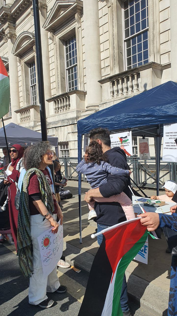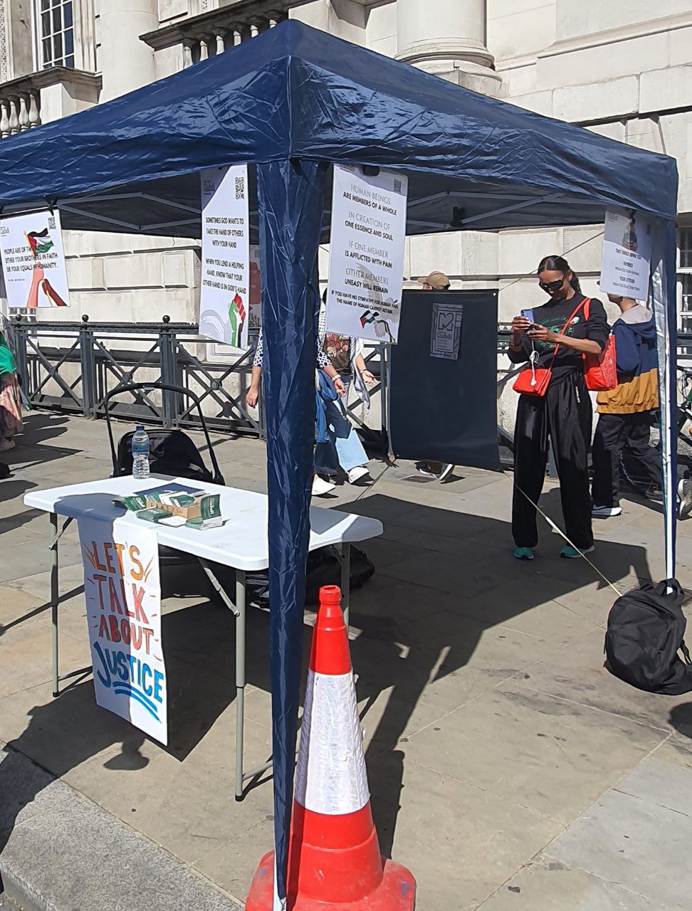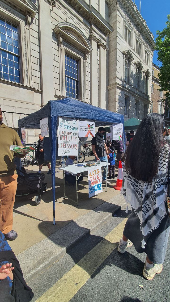 على الرغم من قصر مدة وجودنا في لندن، إلا أن ذلك اليوم في قلب المدينة وبين المشاركين في مسيرة دعم فلسطين، أيقظ وعي العديد من زوار جناحنا.