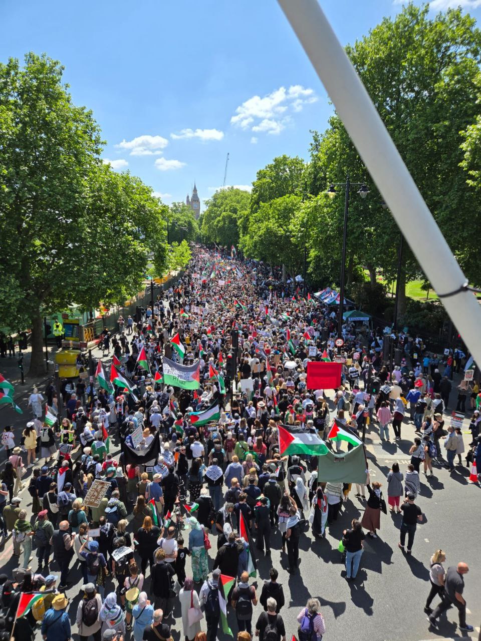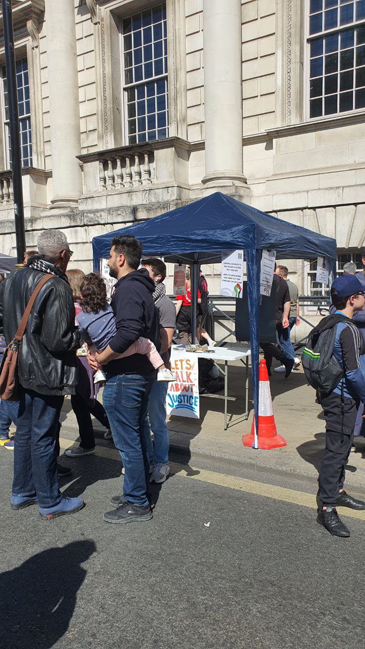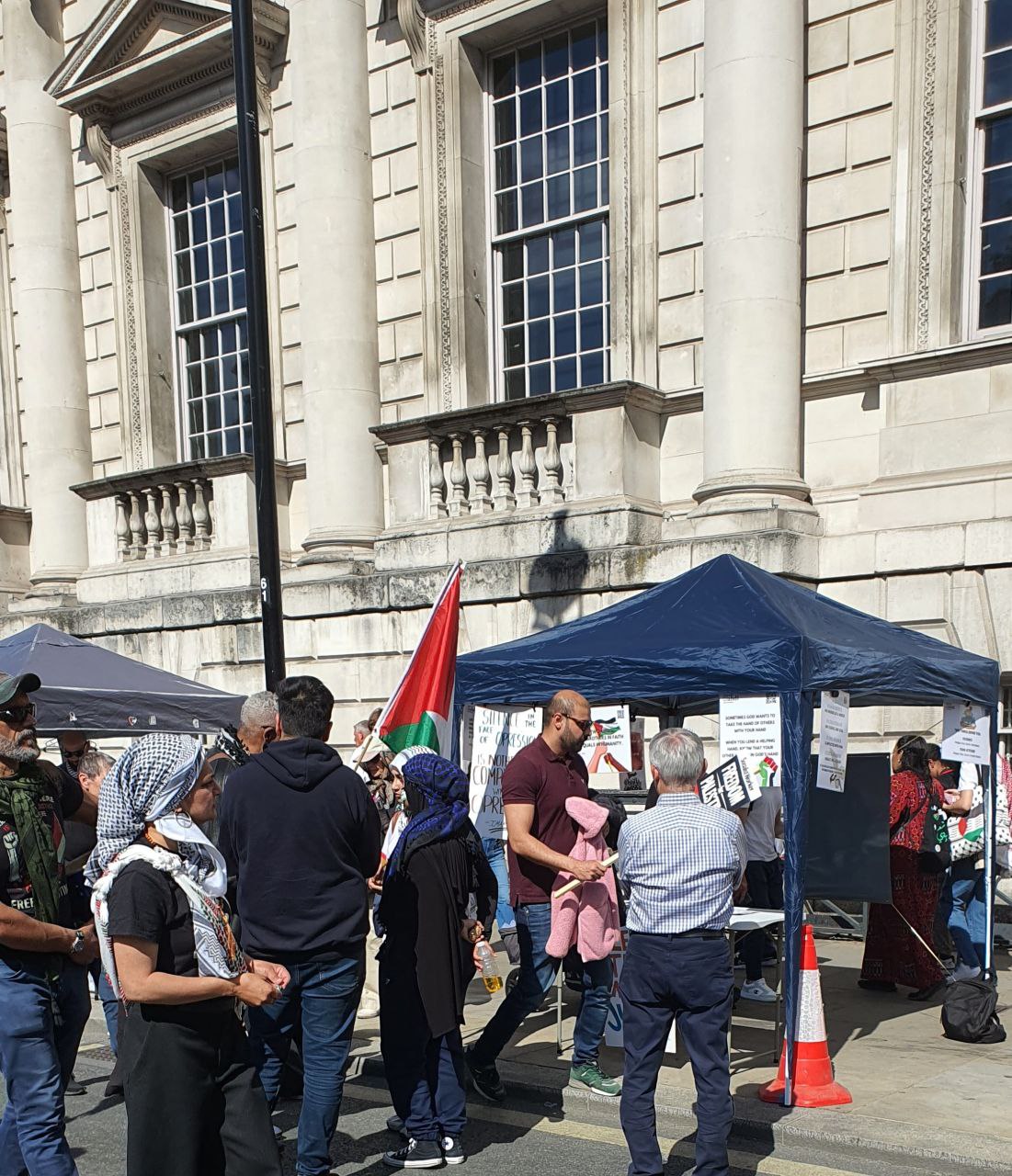 على الرغم من قصر مدة وجودنا في لندن، إلا أن ذلك اليوم في قلب المدينة وبين المشاركين في مسيرة دعم فلسطين، أيقظ وعي العديد من زوار جناحنا.
