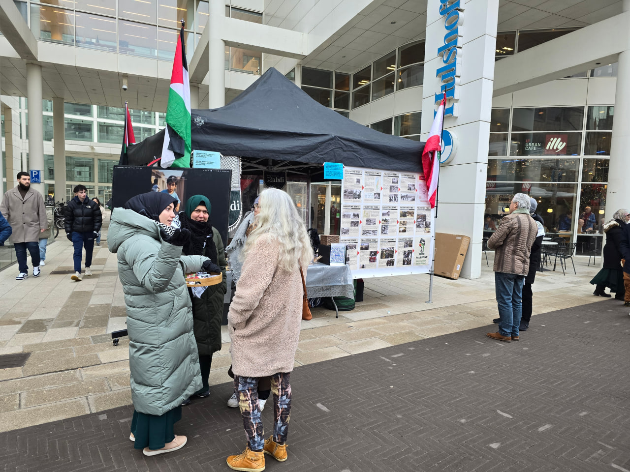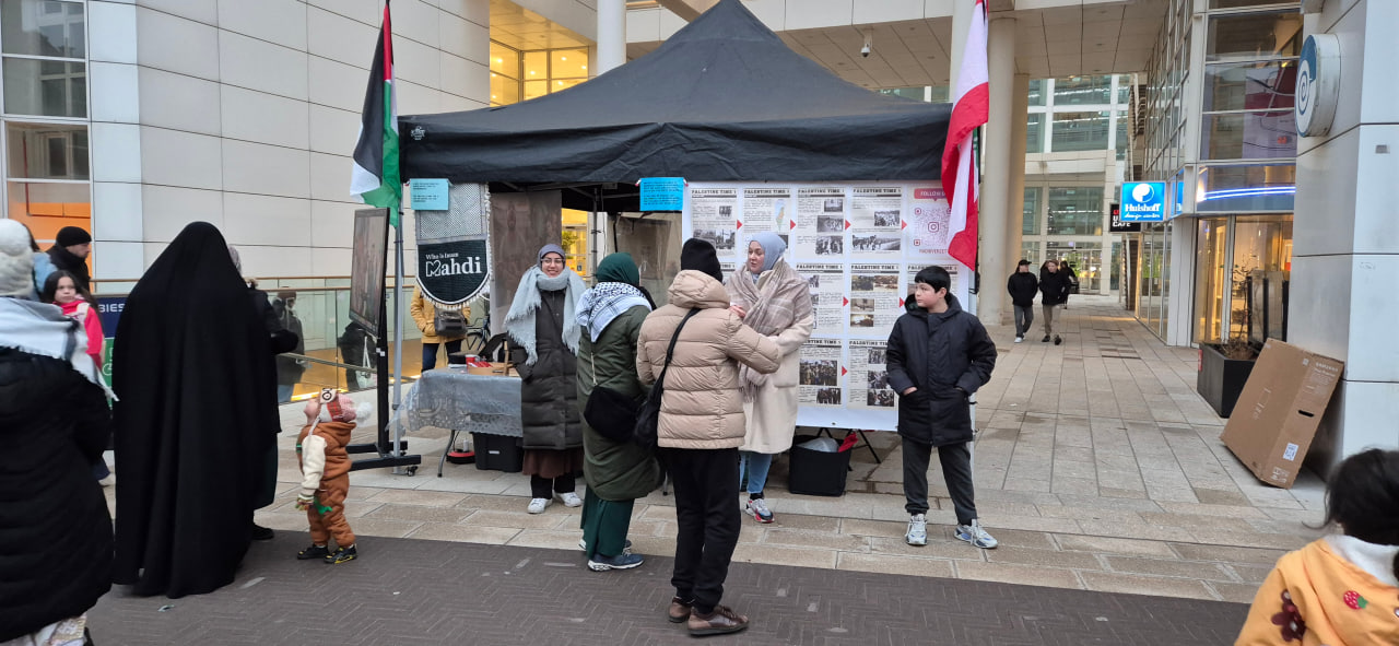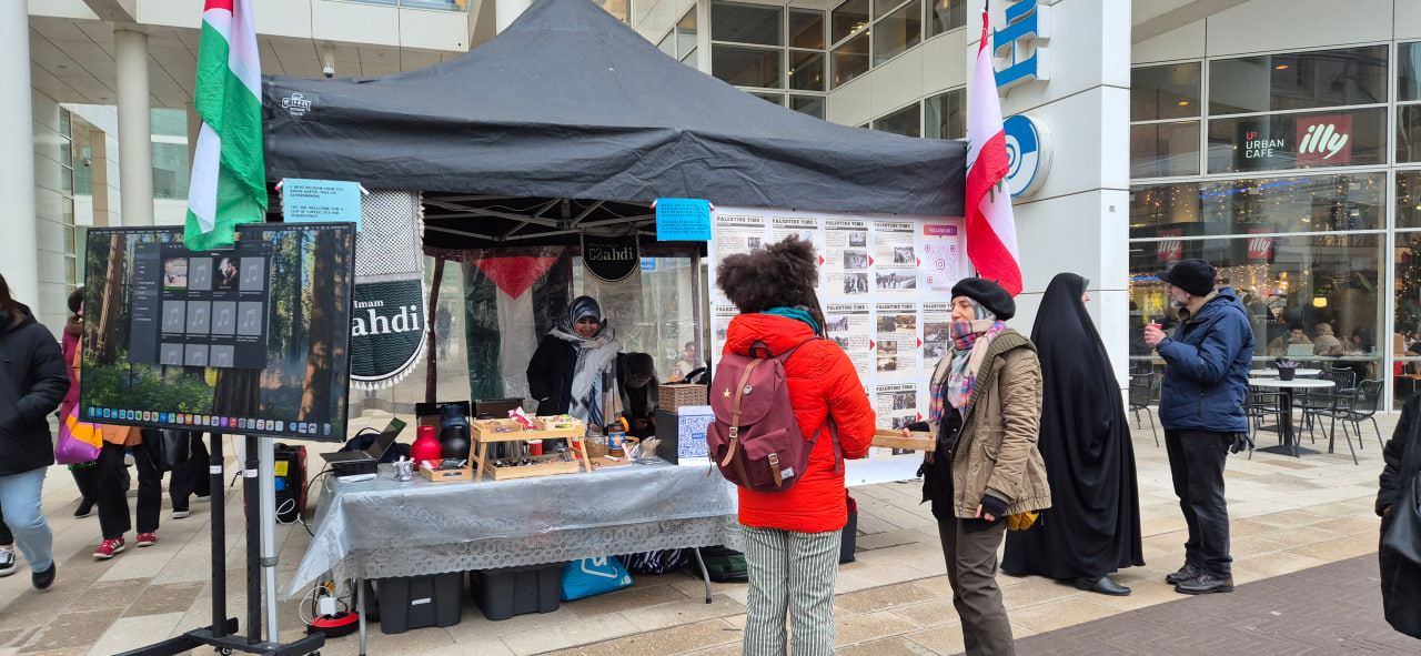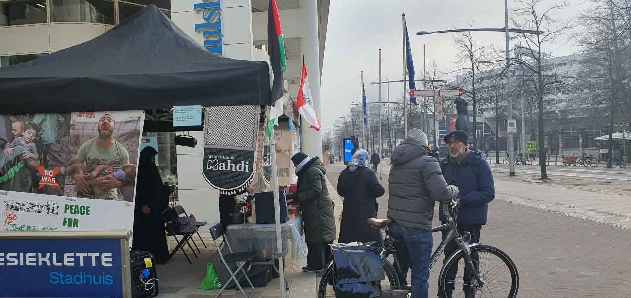 كان لا بُدَّ من تجهيزاتٍ كاملة لإقامة جناحٍ عرضيّ لحملتنا في مدينة تكتسي بأهميةٍ سياسيّةٍ بالغة. من أعلامٍ مناهضةٍ للاستكبار وداعمةٍ لفلسطين، إلى صورٍ لجرائم وحوشِ الصهيونية في غزة — كان الموضوع المركزي لحملتنا قضيةُ فلسطين مع محورٍ أسمى: حاجة العالم إلى منقذ.