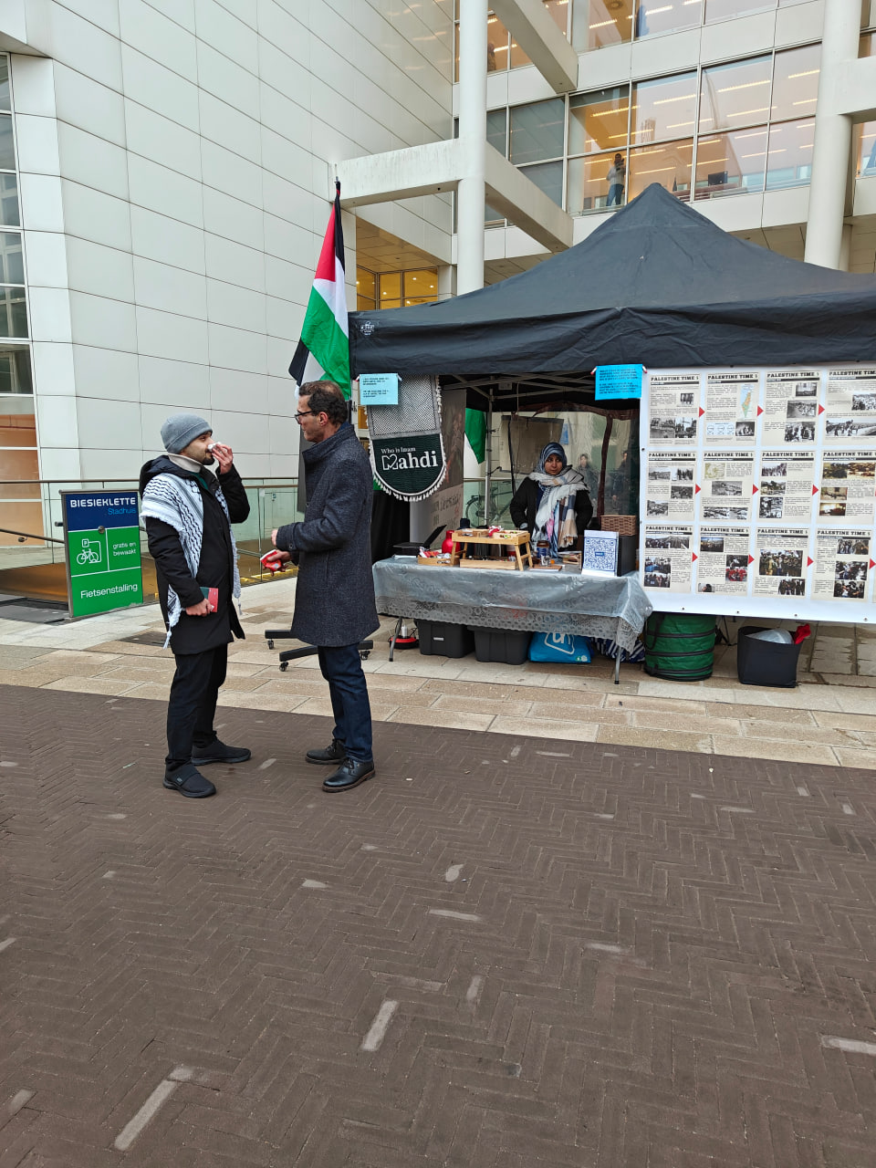 رغم أن جمهورنا كان في غالبيته من شباب لاهاي، إلّا أن امرأة مسنّةً وقفت وسط الحضور وكانت — في خضمّ الاستقطاب العالمي الجديد — شديدة البغض لإسرائيل. سألت عن نوع نشاطاتنا، وبعد أن تسلّمت كتيّب الحملة توقّفت للحظاتٍ وتحدّثت معنا. من الحديث عن فلسطين انتقلنا إلى مسألة حاجة العالم إلى منقذ. قالت: إن المسيح سيعود قريبًا وستنتهي الحروب والظلم في العالم.